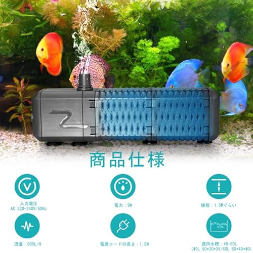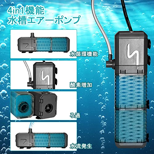 水槽の中に設置するタイプ、電動モータータイプとエアーリフト式が有ります。