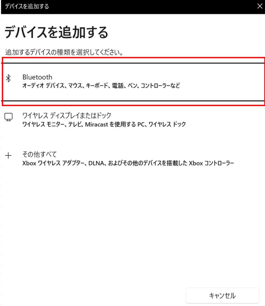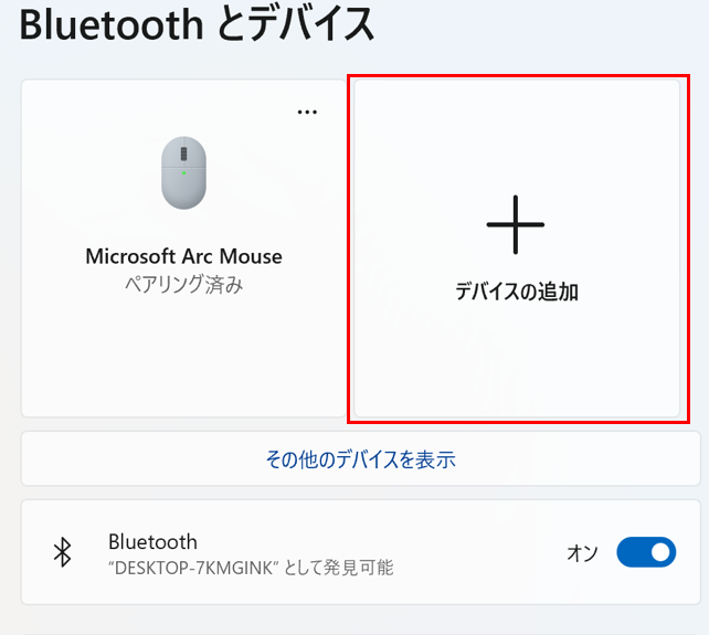 ●デスクトップの「スタート」→「設定」→「Bluetoothとデバイス」→「デバイスの追加」